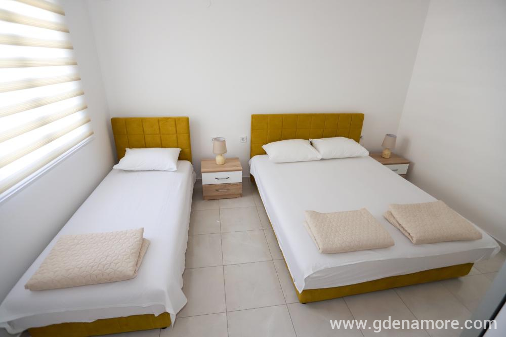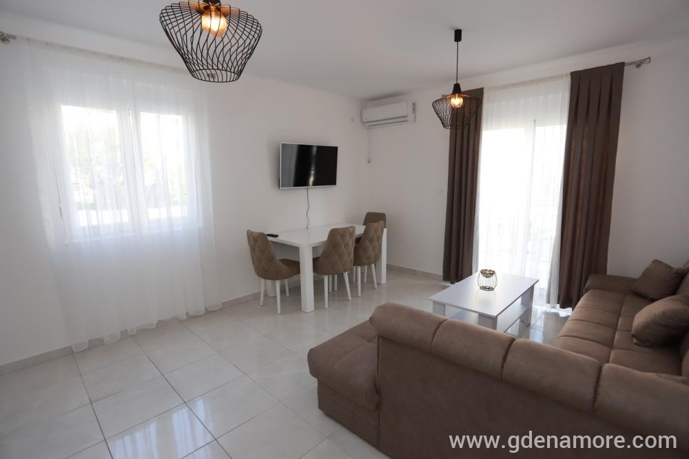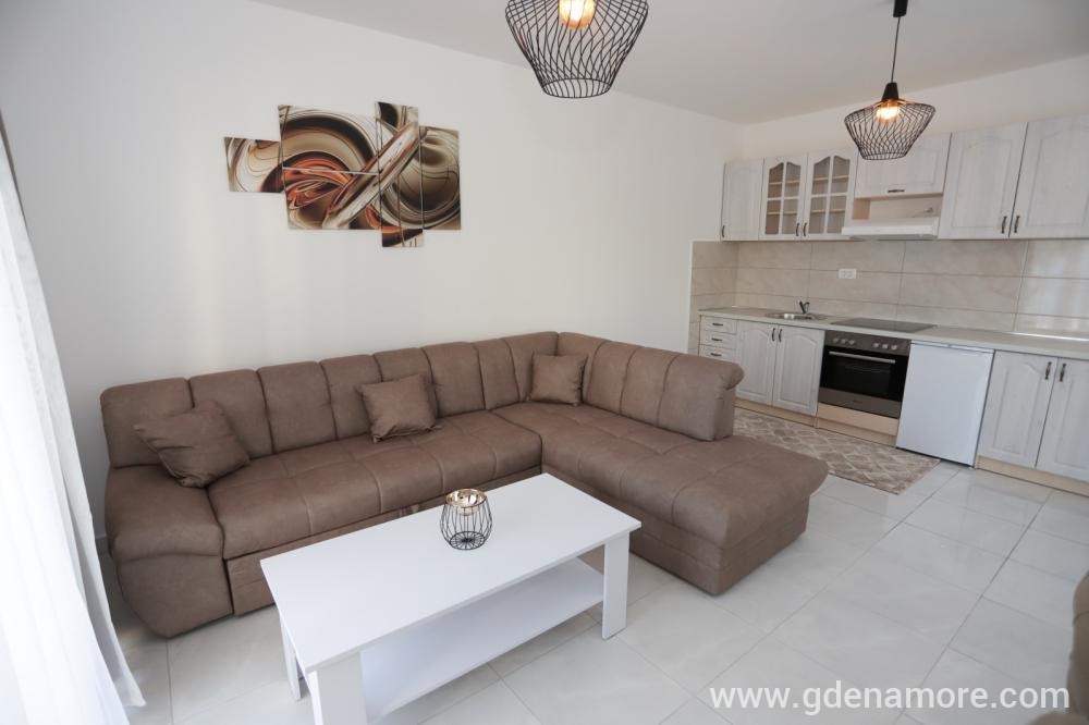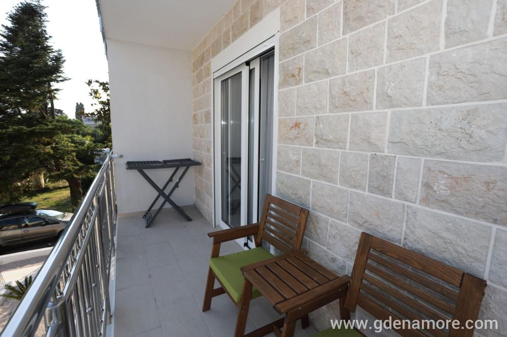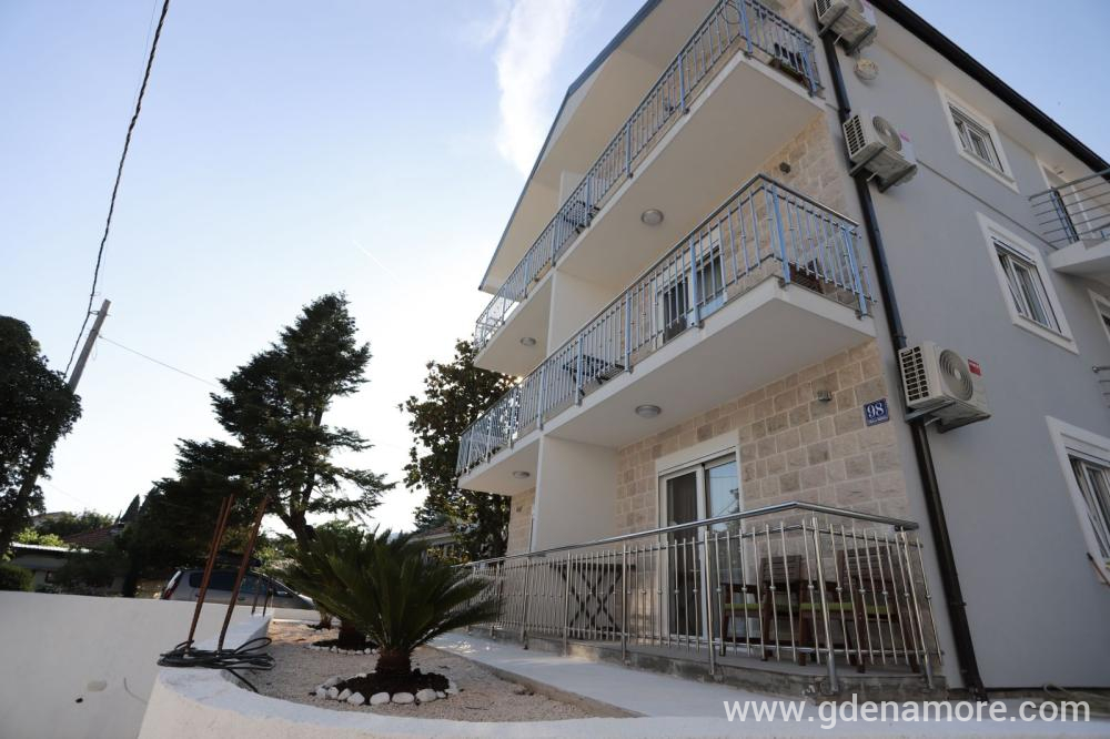 Apartments Mimoza ligger på første linje av strandpromenaden i Baošići, over stranden.